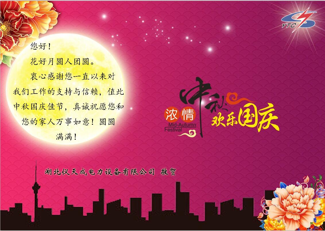 在這舉國(guó)歡慶的時(shí)刻,湖北儀天成電力設(shè)備有限公司衷心的祝愿祝所有的員工,所有的新老客戶,國(guó)慶節(jié)以及中秋節(jié)快樂(lè)!