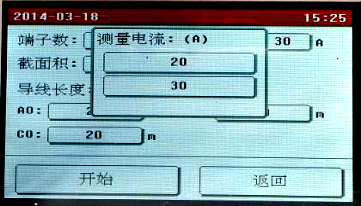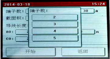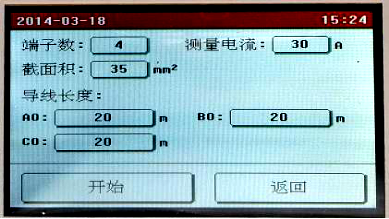 點(diǎn)擊需要修改的參數(shù)設(shè)置框設(shè)置參數(shù),全部設(shè)置完成后點(diǎn)擊“開(kāi)始”按鈕,儀器即按照設(shè)置的參數(shù)開(kāi)始自動(dòng)測(cè)量各端子的電阻值,并計(jì)算電阻率,自動(dòng)判斷接地線(xiàn)是否合格。