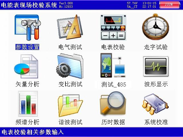 CT變比:分兩種情況;當(dāng)進(jìn)行高壓計(jì)量直接測試時,用來輸入高壓計(jì)量表計(jì)所接的電流互感器比值,從而在電氣測試中的一次參量中可直接換算到一次側(cè)的電流值;當(dāng)進(jìn)行低壓計(jì)量表計(jì)直接從CT一次側(cè)取樣進(jìn)行電表校驗(yàn)時,用來輸入計(jì)量表計(jì)所接的電流互感器比值,才能完成正常的校驗(yàn);設(shè)置時,先按【確定】鍵進(jìn)入修改狀態(tài),此時本項(xiàng)參數(shù)變成紅色顯示,再按下相應(yīng)的數(shù)字鍵輸入所需的數(shù)字,最后按【確定】鍵完成設(shè)置。