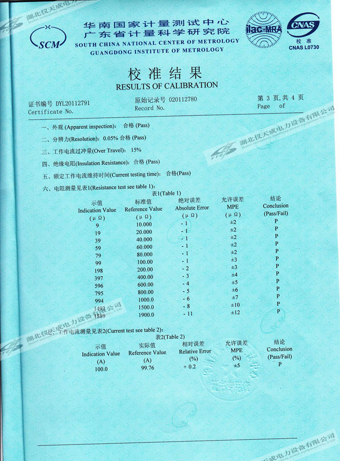轉(zhuǎn)載:"YTC5501-100A 回路電阻測(cè)試儀的資質(zhì)證書(shū)" 請(qǐng)注明來(lái)源于儀天成電力。 更多技術(shù)問(wèn)題請(qǐng)致電儀天成電力客戶服務(wù):027-87876585,技術(shù)部專線:027-87876585,在線客服:719388481